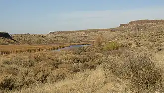 ![]() Der Untere Crab Creek oberhalb des Zusammenflusses mit dem Red Rock Coulee | ||
