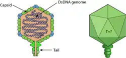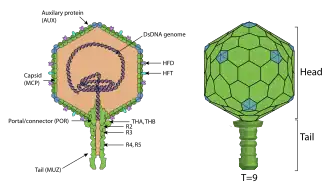 Virion von crAss002 im Vergleich zu crAss001Spezies Jahgtovirus secundus, mit Bacteroides phage crAss002 (de Bacteroides-Phage crAss002)[26]