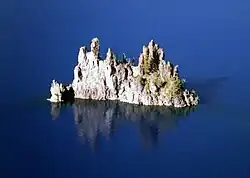 Es gibt zwei Inseln: die größere Wizard Island („Zauberer-Insel“) im Westen und die kleine bizarr geformte Phantom Ship Island („Geisterschiff-Insel“) im Süden.