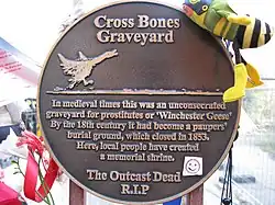 - ↑ a b R. Mikulski, R. (28. März 2007). "Cross Bones burial ground", Museum of London Archeology Service.