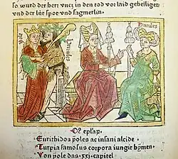 - ↑ Konrad von Würzburg: Der Trojanische Krieg. Hrsg.: Adelbert von Keller. Stuttgart 1858, S. 185–198 (mittelhochdeutsch, digitalisiert).