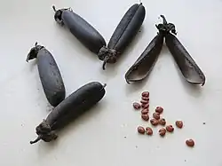 Illustration von Crotalaria incanaHülsenfrüchte von Crotalaria pallidaHülsenfrüchte und Samen von Crotalaria retusaCrotalaria cunninghamii