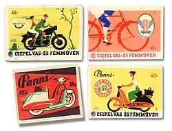 1939 begann die Herstellung von Motorrädern in großer Stückzahl, am Anfang ein 100-cm³-, danach ein 125-cm³- und ein 250-cm³-Modell mit dem Markennamen „Csepel“. Während des Zweiten Weltkriegs wurde die Motorradfabrik zerstört. 1947 konnte die Motorradproduktion zunächst in Gestalt eines 100-cm³-Modells wieder aufgenommen werden.[3] Ab 1954 wurden die in „Csepel Motorkerékpárgyár“ gefertigten 250-cm³-Motorräder unter dem Namen Pannonia verkauft. Gleichzeitig wurde mit der Produktion des Csepel-125-Motorrads der Name des Werkes in „Danuvia Szerszámgépgyár“ (Danuvia Werkzeugmaschinenfabrik) geändert. Beide Werke feierten 1960 die Auslieferung des einmillionsten Kraftrads.[4] Die nach den Vereinigten Staaten ausgelieferten Pannonia-Motorräder wurden als White bezeichnet. Der Name wurde vom Firmengründer Mánfred Weiss abgeleitet. Im Jahr 1975 stellte die Firma in Csepel die Motorradproduktion ein. Stattdessen wurden fortan in großem Umfang Fahrräder produziert: 1977 wurden 330 000 Stück gebaut, für 1978 waren gar 500 000 Stück geplant.[5]