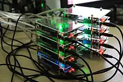 Das Cubieboard ist ein Einplatinencomputer, der als Open-Source-Projekt im September 2012 vorgestellt wurde und ab Oktober 2012 verkauft wurde.[1] Eine Besonderheit des Systems ist sein (in dieser Leistungsklasse ungewöhnlicher) SATA-Anschluss,[2] der bei der neuesten Version Cubieboard4 durch USB 3.0 ersetzt wurde. Als Betriebssystem ist Android im Flash-Speicher vorinstalliert, alternativ können verschiedene angepasste Linux-Distributionen oder OpenBSD[3] verwendet werden.