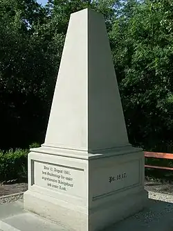 Das Denkmal hat die Form eines kleinen Obelisken, der auf einem viereckigen Sockel steht. Auf den vier Seiten des Sockels steht jeweils ein Hinweis auf ein Mitglied des Königshauses Hannover: