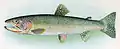 | Yellowfin[Anmerkung 2]-Cutthroat-Forelle | † O. c. macdonaldi (Jordan & Fisher, 1891) |