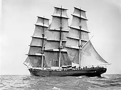 - Rigg: Vollschiff mit geteilten Mars-, einfachen Bram-, Royal-, Lee-, Groß-Skysegel (Teeklipperrigg); 1885 reduziertes Rigg; 1916 Barkentine; 1923 Originalrigg