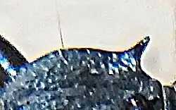 Der schmale, herzförmige Halsschild ist deutlich grober verrunzelt punktiert als der Kopf. Er hat eine tief eingedrückte Mittellinie, die meist über die gesamte Länge des Halsschilds ausgebildet ist. Die Hinterecken sind zu einem langen Dorn ausgezogen, der nach oben gebogen ist (Abb. 3).