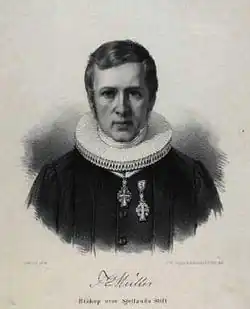 Unter den Theologen ist in erster Reihe der bereits als Dichter erwähnte Pastor Grundtvig zu nennen, der den Kampf gegen den Rationalismus der Zeit mit Erfolg aufnahm, zugleich für den nordischen Einheitsgedanken und die Entwicklung eines freien Volkslebens wirkte und auf das geistige Leben in Dänemark von tiefgreifendem Einfluss war. Neben Grundtvig sind als die bedeutendsten Theologen anzuführen: Jakob Peter Mynster (1775–1850), Bischof von Seeland, und Henrik Nicolai Clausen (1793–1877), ein Vertreter einer kritischen Richtung innerhalb der Theologie. Auch Hans Larsen Martensen (1808–1884), der Verfasser einer christlichen Ethik, gelangte zu einer über Dänemark hinausreichenden Berühmtheit. Als Übergangsglied zwischen Theologie und Philosophie kann Søren Kierkegaard (1813–1855) gelten, der „größte Denker Dänemarks“, der das Grundprinzip des Christentums in einer höchst individuellen Weise auffasste und in gewisser Hinsicht eine Parallele zu Ludwig Andreas Feuerbach bildet.