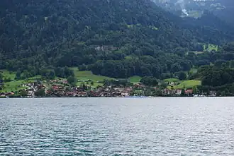 Das Dorf befindet sich am Seeufer, während die Gemeinde bis zum Därliggrat reicht.