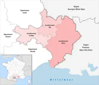 | Unterpräfektur(en) | Alès Le Vigan |