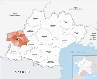 ![]() Lage des Départements Gers in der Region Okzitanien | |