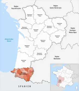 ![]() Lage des Départements Pyrénées-Atlantiques in der Region Nouvelle-Aquitaine | |