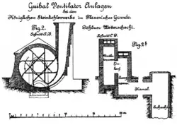 Im Jahr 1873 wurden die ursprünglichen Wettersätze abgebrochen. Der Schacht wurde ausgemauert und mit einem Guibal-Ventilator mit sieben Metern Durchmesser und 1,80 Metern Breite ausgerüstet. Angetrieben durch eine Dampfmaschine hatte er nun eine Leistung von 600 Kubikmeter Luft pro Minute.