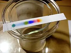 Im einfachsten Fall sind die getrennten Substanzen beim Betrachten unter UV-Licht als Punkte sichtbar. Alternativ können sie vor der Chromatographie mit Chromophoren derivatisiert werden, damit sie UV-aktiv werden. Auch das Besprühen mit oder Tauchen in Reagenzienlösungen sind weitere Möglichkeiten.
