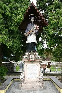 - Gegenüber der Schlossanlage steht an einer Bushaltestelle an der ul. Opolska eine im Jahr 1719 entstandene Nepomukstatue.[5]