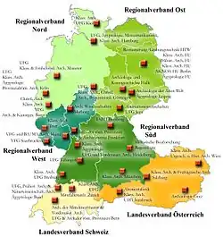 - Regionalverband Ost (Mecklenburg-Vorpommern, Berlin, Brandenburg, Thüringen, Sachsen, Sachsen-Anhalt)