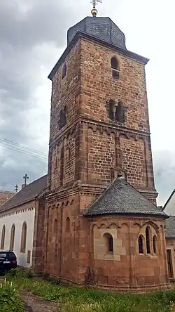Zentrum des aus fünf Klosterhöfen im 12. Jahrhundert zusammengewachsenen Ortes ist seine katholische Pfarrkirche St. Maria. Sie gehörte seit 1147 dem Kloster Höningen. Aus dieser Zeit stammen noch der romanische Turm mit Rundbogenfries im Sockelgeschoss und Doppelarkaden im Obergeschoss sowie die Chorapsis mit 3/8 Abschluss. Das Langhaus wurde im 18./19. Jahrhundert erneuert. Dabei wurde im Giebelfeld ein Relief des Sündenfalls aus dem Vorgängerbau – möglicherweise vom Portal-Tympanon – integriert.