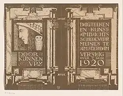 1901 wurde die Zeichenschule neu organisiert und mit Zuschüssen von der Gemeinde, der Provinz und der Landesregierung um eine Handwerks- und Kunstgewerbeabteilung erweitert. Sie wurde am 1. September 1902 mit einem umfassenden Personalstab und etwa 70 bis 80 Schülerinnen zunächst in der Groenburgwal 24 eröffnet.[3] Mit der weiter wachsenden Schülerinnenzahl und der Erweiterung des praktischen Unterrichts in Lithographie, Radierung, Buchbinderei, Holzschnitzerei und Textiltechnik wurde ein besser geeignetes Gebäude erforderlich. Im Jahr 1908 wurde das neue Schulgebäude in der Gabriël Metsustraat 16 nach einem Entwurf des Architekten Hendrik Petrus Berlage in Betrieb genommen.[4]