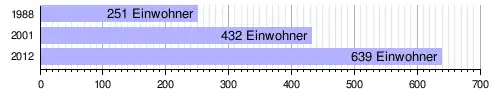 Im Hauptort lebten bei der Volkszählung 2012 639 Einwohner in 98 Haushalten,[1] bei der Volkszählung 2001 432 in 69 Haushalten[7] und bei der Volkszählung 1988 251 in 41 Haushalten.[8]