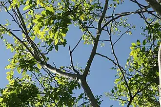 Die wechselständigen und gestielten Laubblätter sind unpaarig oder falsch unpaarig gefiedert. Die lederigen, glänzenden und gestielten Fiederblättchen sind bei einer Länge von 2,5 bis 12 Zentimetern eiförmig bis elliptisch, lanzettlich mit rundspitzigem bis spitzigem oder teils ausgerandetem oberen Ende.