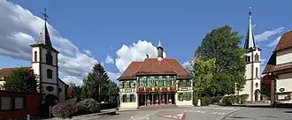 Rund um das Haufendorf liegen Landwirtschaftszonen, Wälder und kleine Seen. Der Rhein flankiert die Ortschaft im Süden und im Osten und bildet dort die Landesgrenze zur Bundesrepublik Deutschland. Das Gemeindegebiet wird auch von der Moder durchquert, in die hier ihr Zufluss Landgraben einmündet.