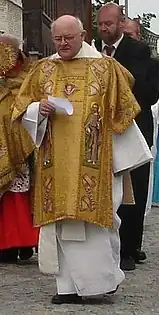 Katholischer Diakon in Dalmatik älteren Schnitts