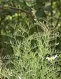 Die 5 bis 10 cm langen, gefiederten Laubblätter sind dicht kurz anliegend behaart bis fast kahl und bestehen aus sieben bis zehn Paaren linealer, manchmal gegeneinander versetzter Fiederblättchen. Die kurz gestielten bis fast sitzenden Fiederblättchen sind etwa 15 bis 25 mm lang und mehr oder weniger 1 mm breit. Die kleinen, schmal-lanzettlichen Nebenblätter besitzen keine Nektarien.