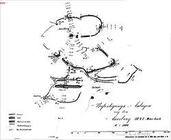 1878 verortete der Kemptener Historiker Franz Ludwig Baumann Damasia auf dem Auerberg an der Grenze des Allgäus zu Oberbayern.[24] Dieser etwa 4 km vom Lech entfernt liegende Berg von 1055 m ü. NN Höhe ist der größte voralpenländische Berg im Lechraum und überragt seine Umgebung um etwa 200 Meter. Baumann sieht die in seinem 1883 erschienenen Werk bereits detailliert kartierte[23] weitläufige Ringwallanlage im Gipfelbereich als keltisches Bauwerk an, das „im gesammten Lande zwischen der Donau und den Alpen seines gleichen nicht findet“, und er bezeichnet den Auerberg als „eine keltische Bergveste ersten Ranges“. Dies wurde bereits seinerzeit von anderen Autoren zurückgewiesen.[25]