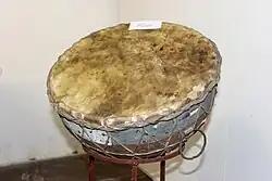 Dennoch sind indische Kesseltrommeln lange vor den islamischen Eroberungen im Mittelalter zweifelsfrei nachgewiesen. Ein zur buddhistisch-hellenistischen Kunst von Gandhara gehörendes Speckstein-Relief aus dem 1. Jahrhundert n. Chr. zeigt eine Reihe von stehenden Figuren, die Wein in Krügen und Tierhäuten herbeibringen und in der Mitte eine Frau mit einem Palmzweig, neben der ein Mann mit den Händen eine zwischen seinen Schenkeln eingeklemmte Kesseltrommel schlägt. Ihr kugelförmiger Korpus scheint aus Ton zu bestehen und erinnert an heute noch in der regionalen Volksmusik gespielte Tontrommeln, etwa die ghumat in Goa. Die tumbaknari in Kaschmir ist eine Bechertrommel aus Ton.[2] Bekannter als solche Tontrommeln im alten und heutigen Indien sind mit den Händen geschlagene Tontöpfe (Idiophone) mit einer engen Öffnung ohne Membran wie die ghatam. Der Name dundubhi kommt im Rigveda, nachfolgend in den großen Epen Mahabharata und Ramayana, in den buddhistischen Jatakas und im Natyashastra vor, der bedeutendsten altindischen Abhandlung über die darstellenden Künste.[3] Ein mit dundubhi gleichgesetztes Wort ist bheri (in heutigem Tamil perikai), das häufig in Jatakas erwähnt wird. Das Bherivada Jataka trägt den Trommelnamen im Titel.[4]