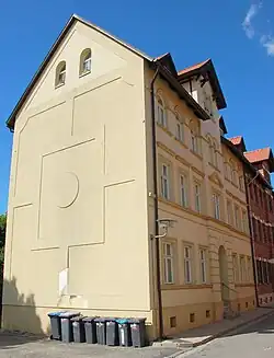 Der dreigeschossige Bau entstand im Jahr 1894 als Ersatzneubau. Die verputzte Fassade des in massiver Bauweise errichteten Hauses ist im Stil des Spätklassizismus gestaltet. Es besteht ein Mittelrisalit in dessen Sprenggiebel sich eine Datierung und Inschrift befindet.