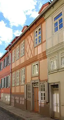 Der zweigeschossige Fachwerkhaus entstand um 1740. An der Fachwerkfassade finden sich Rautenkreuze, die Gefache sind mit Zierausmauerungen versehen. Vor der Stockschwelle befindet sich eine profilierte Bohle. Die Fassade des Erdgeschosses wurde im Stil des Klassizismus umgestaltet.