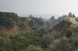 Bis Anfang des 12. Jahrhunderts v. Chr. floss der Lakissa, von Osten kommend, nördlich am Profitis Ilias Hügel und etwa 1 km weiter westlich südlich an der Burg von Tiryns vorbei. Eine Schlammlawine, die möglicherweise durch ein Erdbeben ausgelöst wurde, verschüttete die Siedlung um 1190/80 v. Chr. (am Ende des Späthelladikums III B2), die südlich außerhalb der Burg lag. Durch die Schlammablagerung änderte sich der Lauf des Flusses, der nun nördlich an Tiryns vorbeifloss.