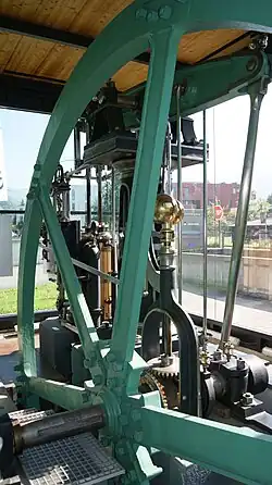 - ↑ Ein Balancierer wurde schon von James Watt bei seiner ersten Kondensationsdampfmaschine zum Betrieb von Wasserpumpen angewendet.