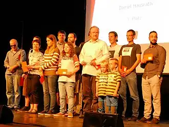 Dortmund 2017, Siegerehrung des Open A. In der Mitte Daniel Hausrath mit zwei seiner Kinder