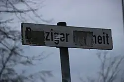 Im Jahr 2018 gab es in Deutschland 1257 Straßen, Plätze oder Wege, die nach der Stadt Danzig benannt waren.[22] Die als Danziger Freiheit benannten Plätze wurden jedoch zumeist nach dem Ende des Zweiten Weltkriegs wieder umbenannt. In einigen Fällen geschah dies auf Befehl der US-Besatzungsmacht.[2] Oftmals entschied sich die Bevölkerung bzw. ihre gewählten Vertreter für eine Umbenennung, da die einstige Namensgebung als nicht mehr tragbares Relikt der Zeit des Nationalsozialismus empfunden wurde.[8]