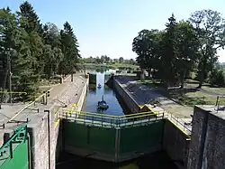 Die 1895 erbaute Schleusenkammer ist 103 Meter lang und 12,5 Meter breit. Sie dient dem Schiffsverkehr und Bootstourismus zwischen Danzig und dem Frischen Haff. Seit 1973 führt eine Brücke über den Wasserweg.