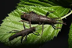 - ↑ a b stabschrecken.com: Haltungsberichte -Stabschrecken, Gespenstschrecken, Wandelnde Blätter, iter novellum Verlag, Saarbrücken 2010, S. 71, ISBN 978-3-00-031913-6