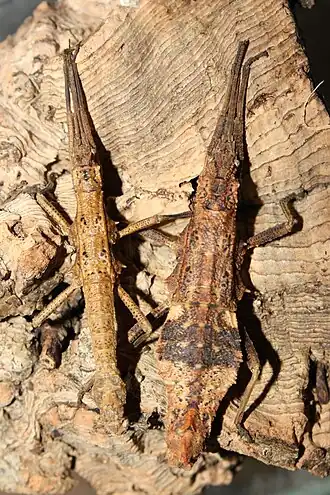 - ↑ a b c Philip E. Bragg: Phasmids of Borneo, Natural History Publikations (Borneo) Sdn. Bhd., Kota Kinabalu, Sabah, Malaysia, 2001, S. 144–146, ISBN 983-812-027-8
