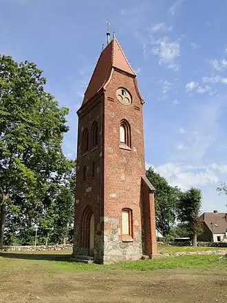 Von der Dorfkirche Dargelütz ist nur noch der Kirchturm im Ort verblieben. Erhalten ist der „Teufelsklaue“ genannte Stein, den der Teufel einst nach der Kirche geschleudert haben soll.[2][3]