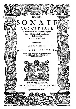 - ↑ Bernhard Moosbauer: Dario Castello. In: Ingeborg Allihn (Hrsg.): Barockmusikführer. Instrumentalmusik 1550–1770. Metzler/Bärenreiter, Stuttgart/Kassel 2001, ISBN 3-476-00979-3, S. 112–114, hier 113.