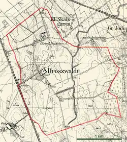 Auf der Schrötterkarte von 1802 war an dem Ort eine Unterförsterei eingezeichnet. Um 1820 war Dro(t)zwalde ein adeliges Hauptgut mit elf Bewohnern.[1] 1874 wurde der Gutsbezirk Drozwalde dem neu gebildeten Amtsbezirk Baltruschelen im Kreis Pillkallen zugeordnet.[2] 1928 wurden aus dem Gutsbezirk einige Abbaue sowie der Paulshof ausgegliedert und auf die Landgemeinden Klein Meschkuppen und Blumenthal verteilt. Das eigentliche Gut Drozwalde wurde mit der Landgemeinde Girrehlischken A zur neuen Landgemeinde Dro(s)zwalde zusammengeschlossen.