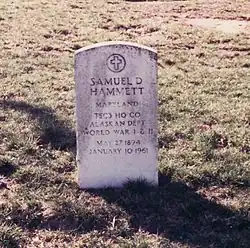 1955 erlitt Hammett einen schweren Herzanfall und lebte seitdem weitgehend zurückgezogen. Seit 1959 erhielt er eine monatliche Pension in Höhe von 131 Dollar von der Veteranenbehörde. Er starb 1961 als armer Mann an Lungenkrebs und ist als Kriegsveteran beider Weltkriege auf dem Nationalfriedhof Arlington bei Washington beigesetzt.