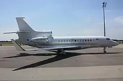 Eine Falcon 7X in den Dassault-Farben an der Paris Air Show 2007