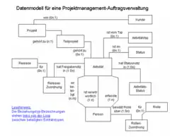 - Das Datenbankschema als Grafik aus dem Implementierungswerkzeug MS Access für dieselbe Projektmanagement-Anwendung – Grafik 2 mit implementierungstechnischen Erweiterungen bzw. Abweichungen vom semantischen Modell. Ein Datenbankmodell als Zwischenstufe wurde hier nicht getrennt erstellt.