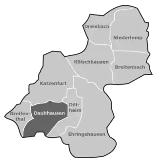 Hessische Gebietsreform (1970–1977) Im Zuge der Gebietsreform in Hessen wurden zum 1. Januar 1977 die Gemeinden Ehringshausen, Breitenbach, Daubhausen, Katzenfurt, Kölschhausen und Niederlemp kraft Landesgesetz zur neuen Großgemeinde Ehringshausen zusammengeschlossen.[3][4] Für Daubhausen wurde wie für alle nach Ehringshausen eingegliederten Gemeinden ein Ortsbezirk eingerichtet.[5] Sitz der Gemeindeverwaltung blieb Ehringshausen.