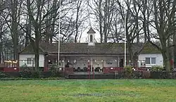 Den funktionalen Mittelpunkt der Gesamtanlage bildet das Vereinsheim,[2] das eigens dafür vom Rittergut Burg translozierte ehemalige Teehaus[4] des städtischen Gutes. Nach seiner Versetzung wurde das Gebäude mit einem Uhrturm geschmückt.[2] An dem auch als Vereinsheim genutzten Gebäude finden sich der Festplatz sowie angrenzende Mustergärten. Dort markieren Vierergruppen von Lauben die Querwege der Anlage.[2] Ab Mitte der 1960er Jahre wurde nördlich des Bahndammes die Kleingartenkolonie Heide-Kamp als Fortsetzung der Anlagen im Löns-Park angelegt.[2]