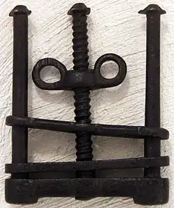 Die Daumenschraube, die in der Constitutio Criminalis Theresiana von 1769 als Daumenstock bezeichnet wurde, war ein Folterinstrument zur „Wahrheitsfindung“ der Rechtsprechung im Spätmittelalter (spätestens ab dem 14. Jahrhundert) und der frühen Neuzeit. Sie wurde bei einer peinlichen Befragung zur Erwirkung von Geständnissen eingesetzt.[1]