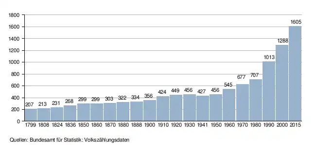 3. Daten der Eidgenössischen Volkszählungen ab 1850 nach Gemeinden. (XLSX; 10 MB) Bundesamt für Statistik, Neuchâtel, 12. Juli 2024, abgerufen am 8. April 2025 (Öffnung in Excel nur über "Anhang/Excel-Datensatz" möglich).