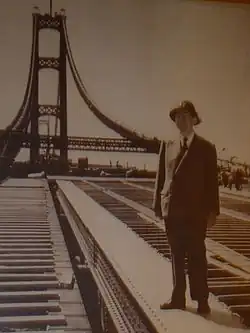 - die Mackinac Bridge (1957), eine als sein Hauptwerk angesehene Hängebrücke über die gleichnamige Wasserstraße zwischen dem Michigan- und dem Huronsee,